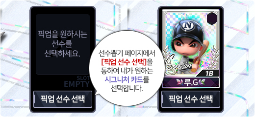 ¨é ¼±¼ö»Ì±â ÁøÇà Àü ¸ÕÀú [ÇȾ÷ ¼±¼ö ¼±ÅÃ]À» Ŭ¸¯ÇÏ¿© ¿øÇÏ´Â ½Ã±×´Ïó Ä«µå¸¦ ¼±ÅÃÇÕ´Ï´Ù.